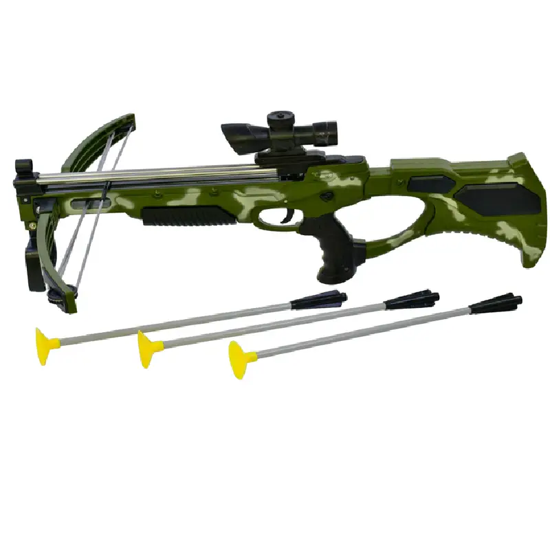 Design verde camouflage: Aspectul in stil camouflage adauga un plus de realism si atractivitate arbaletei, stimuland imaginatia copiilor.