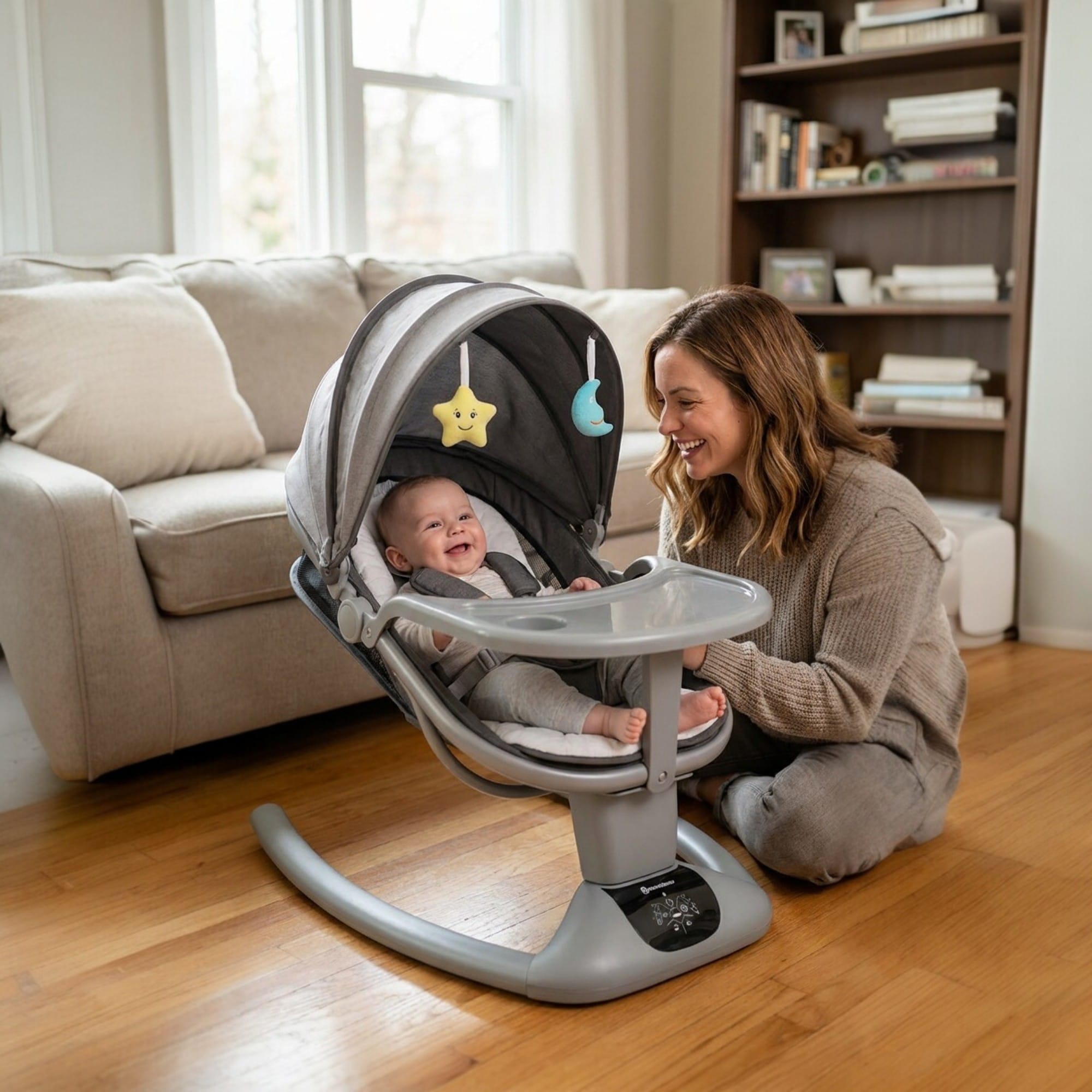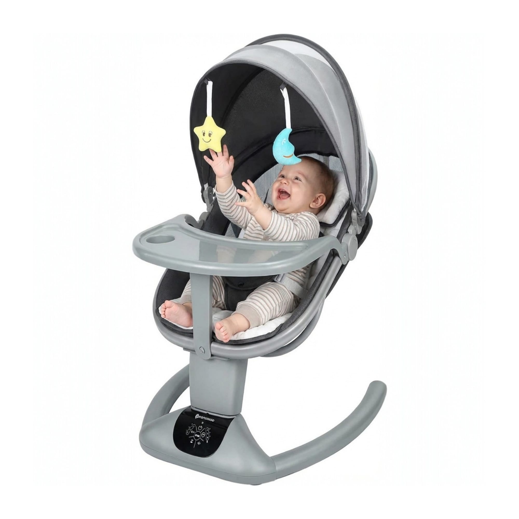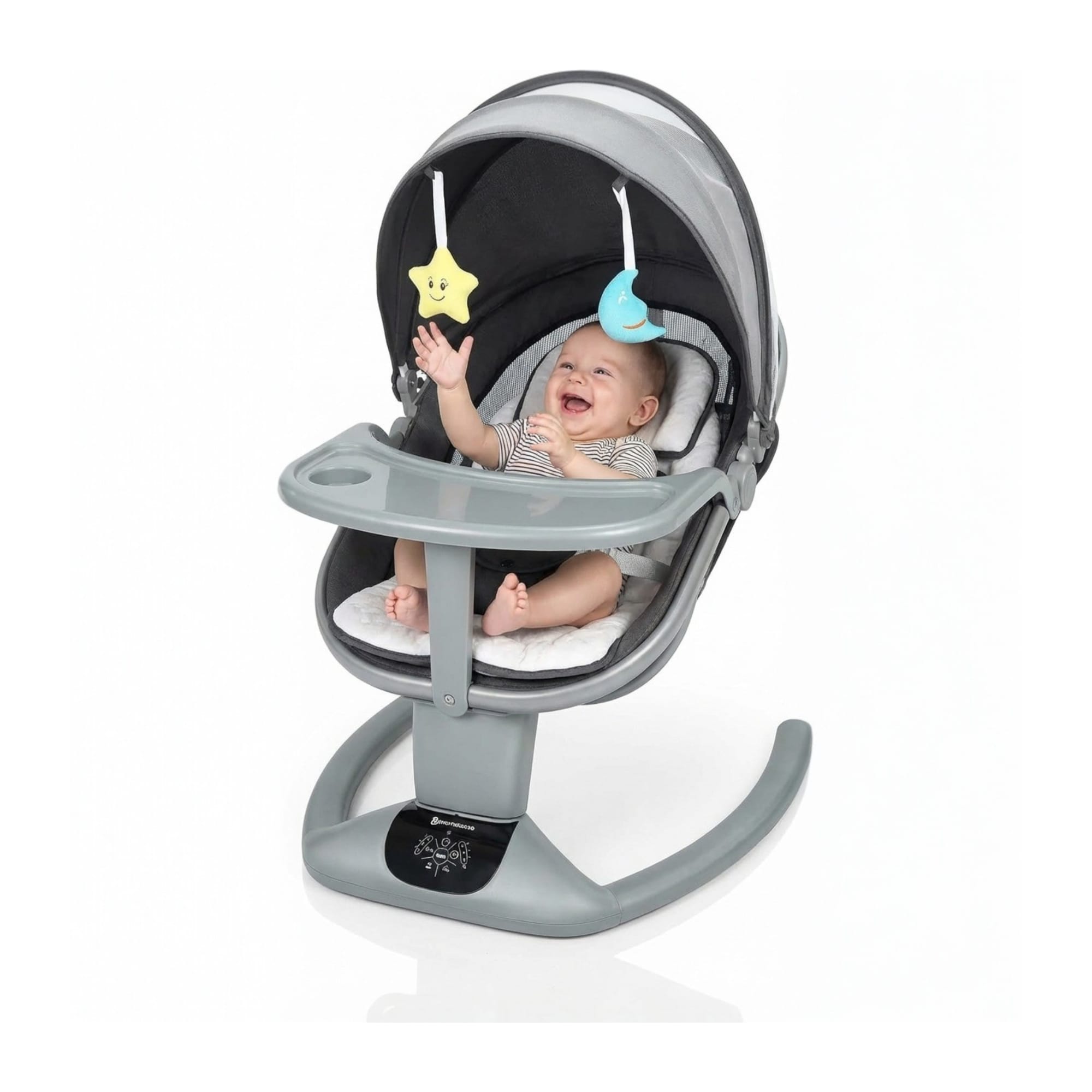 Balansoar electric multifunctional pentru bebeluși, tip leagăn și șezlong, conceput pentru confort zilnic și liniștire sigură.