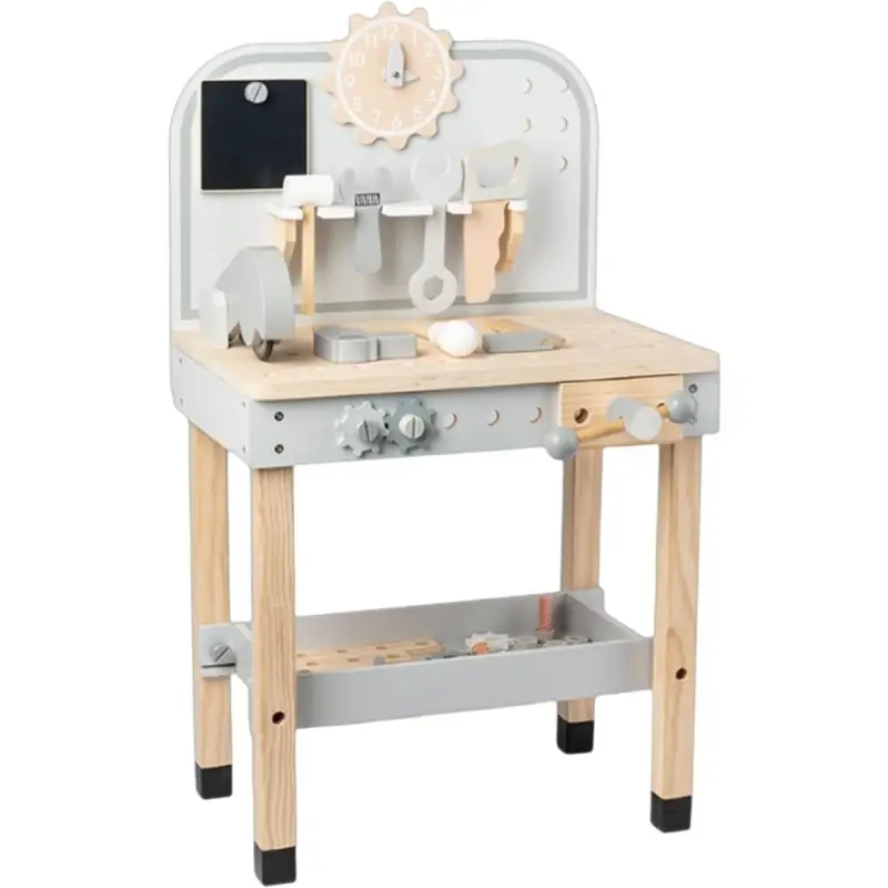 Cu funcționalități interactive, precum ceasul, suportul pentru unelte și sertarul pentru depozitare, acest banc de lucru este alegerea perfectă pentru cadouri sau activități educative.