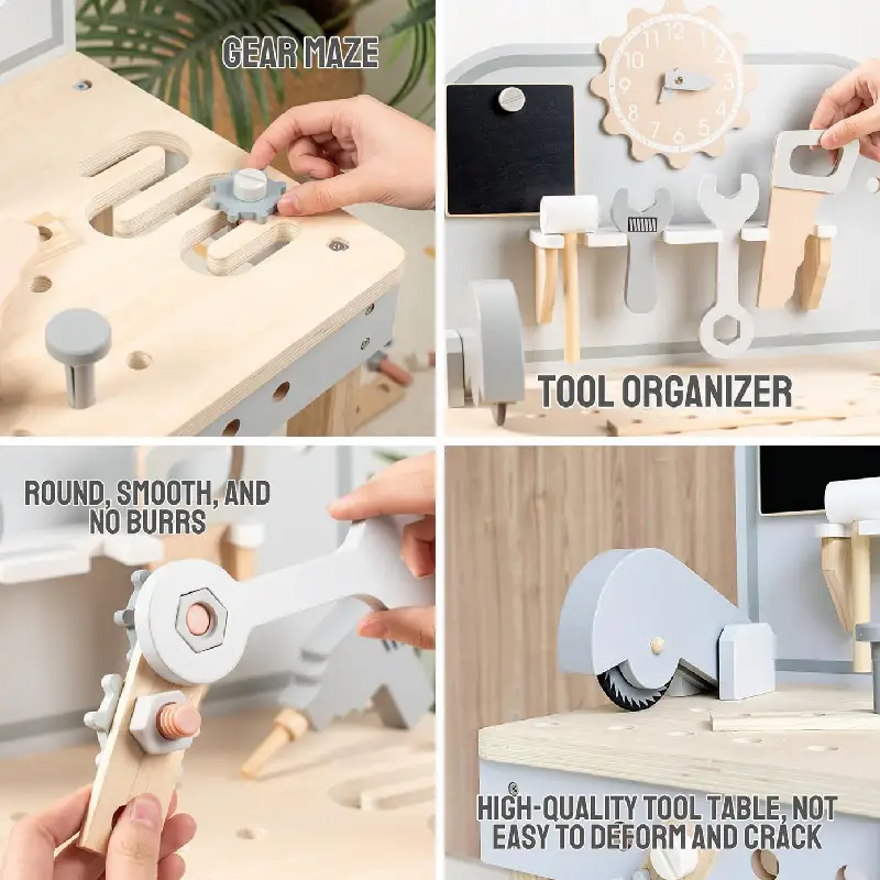 - Activități STEM: Bancul de lucru oferă oportunități pentru copii de a experimenta și a învăța concepte STEM de bază, cum ar fi mecanica simplă, principiile roților sau conceptele de bază ale construcției.