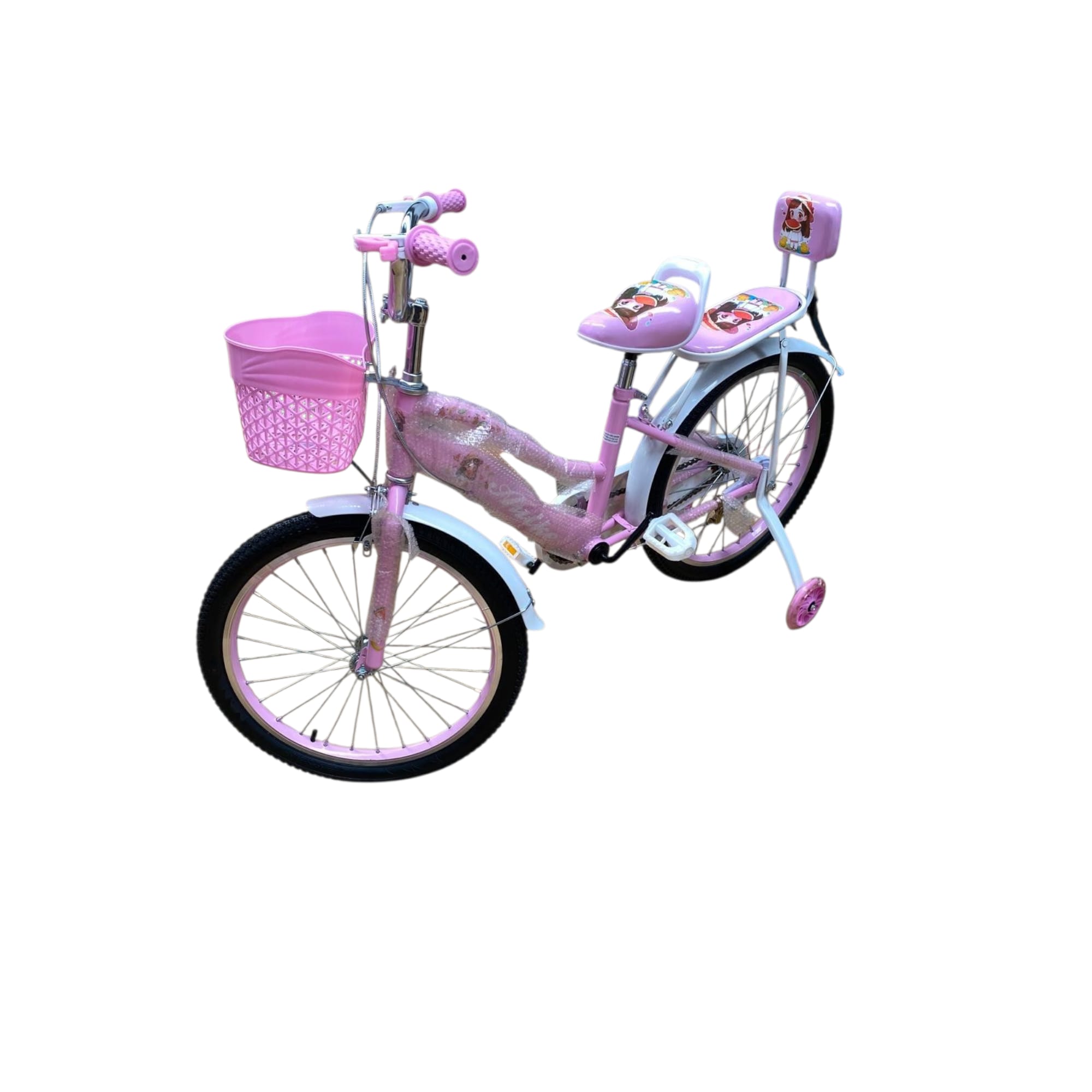 Bicicleta Copii cu Roti Ajutatoare Cos Frontal Scaun pentru Papusi
