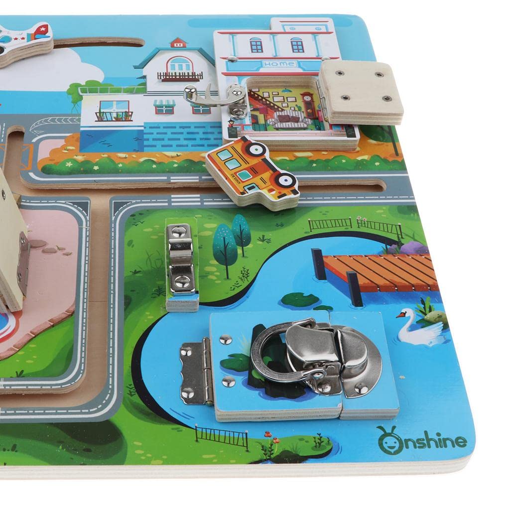 Busy Board Educativ Montessori din Lemn Orasul cu Activitati
