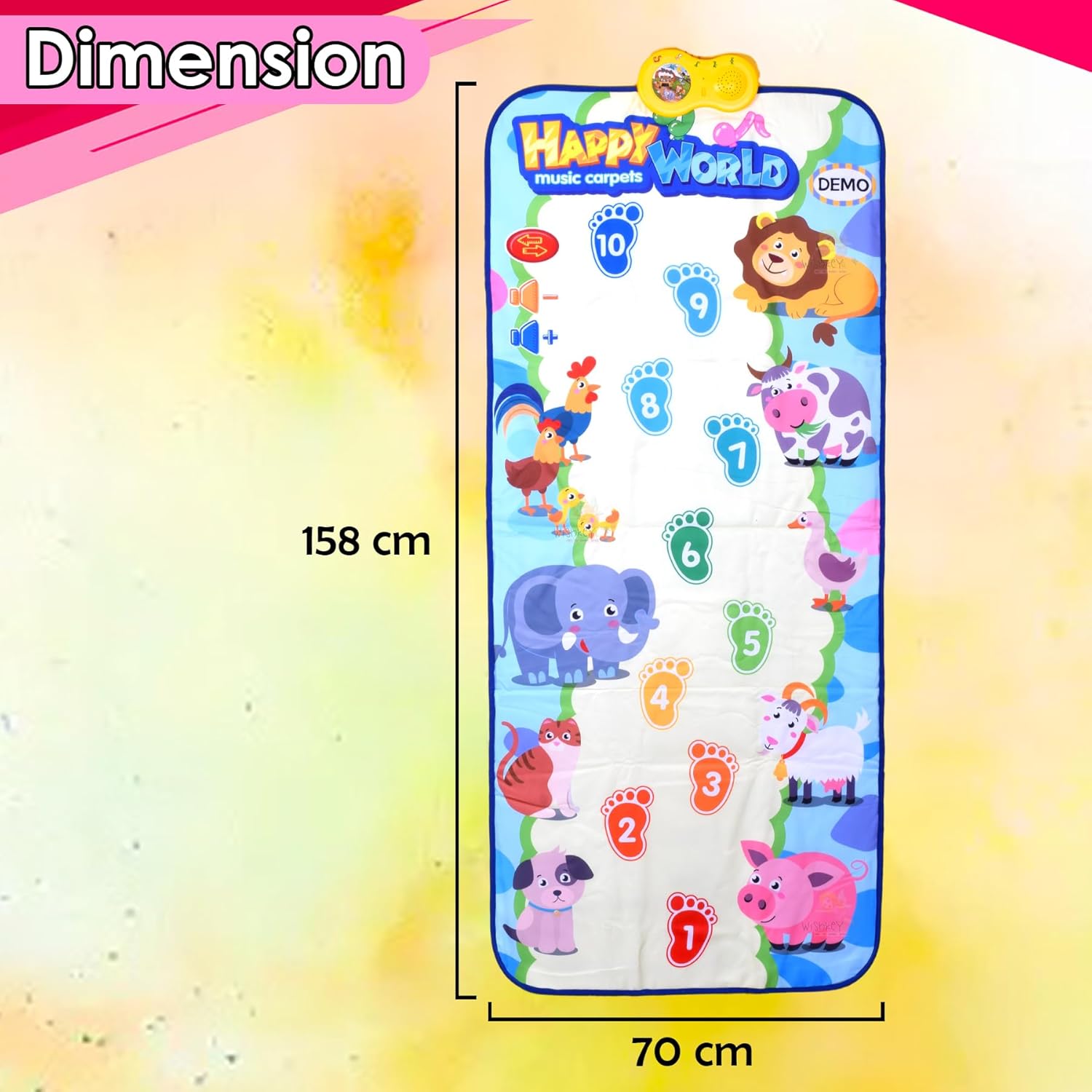 Cu un design colorat și personaje prietenoase din lumea animalelor, covorașul îi ajută pe copii să-și dezvolte coordonarea, simțul ritmului și recunoașterea numerelor și sunetelor.
