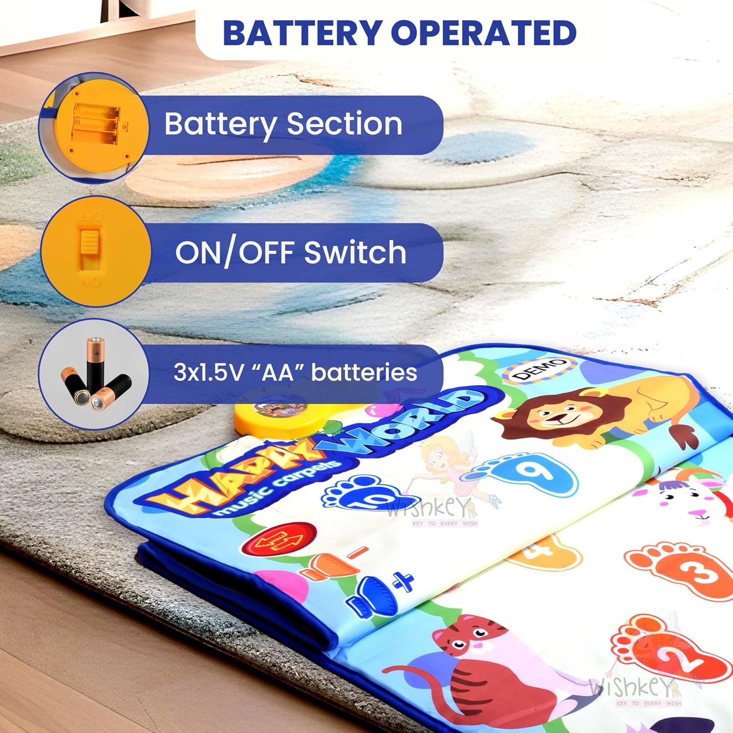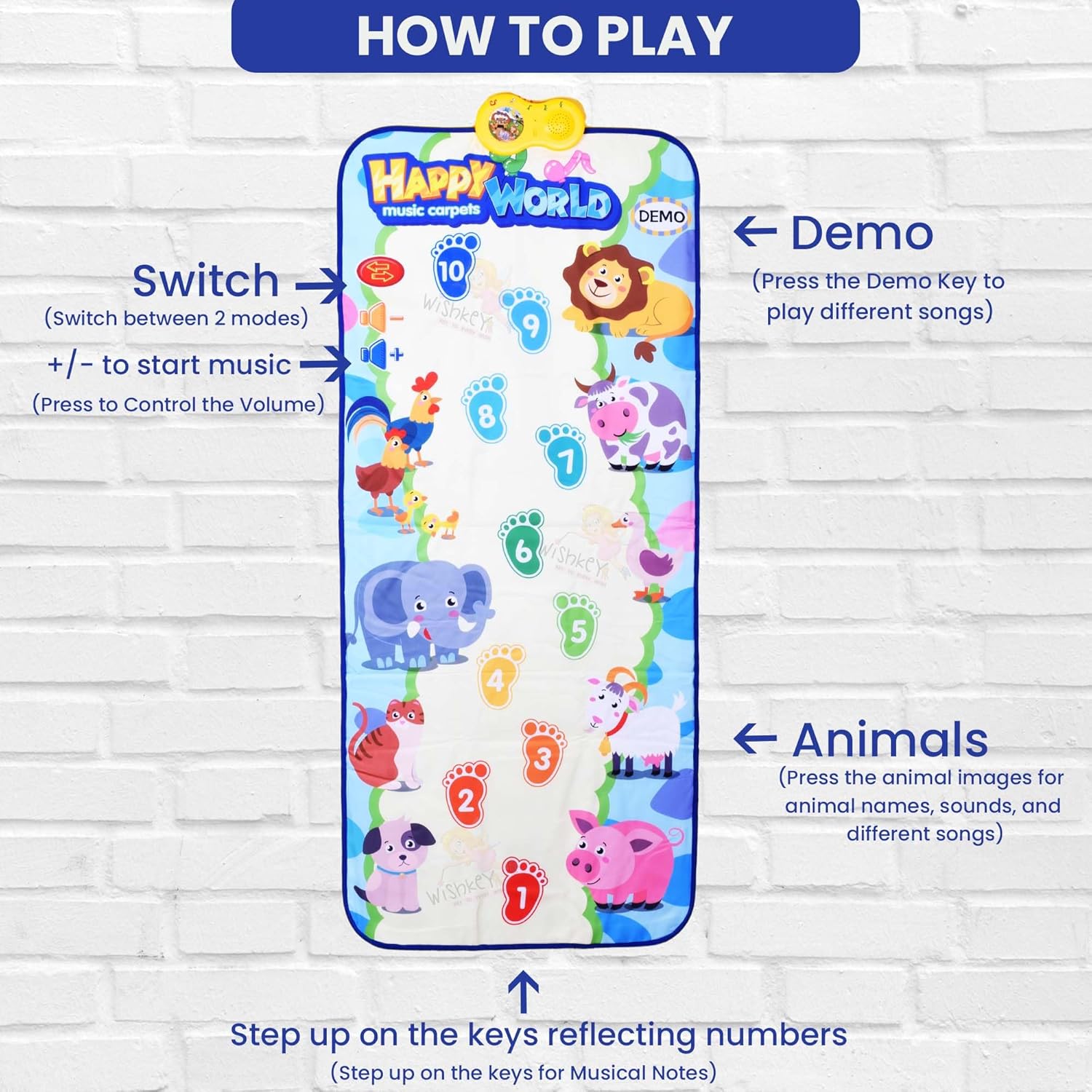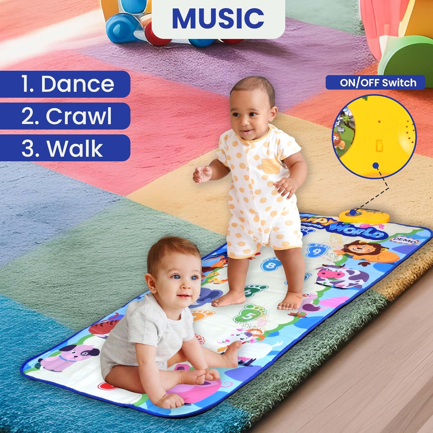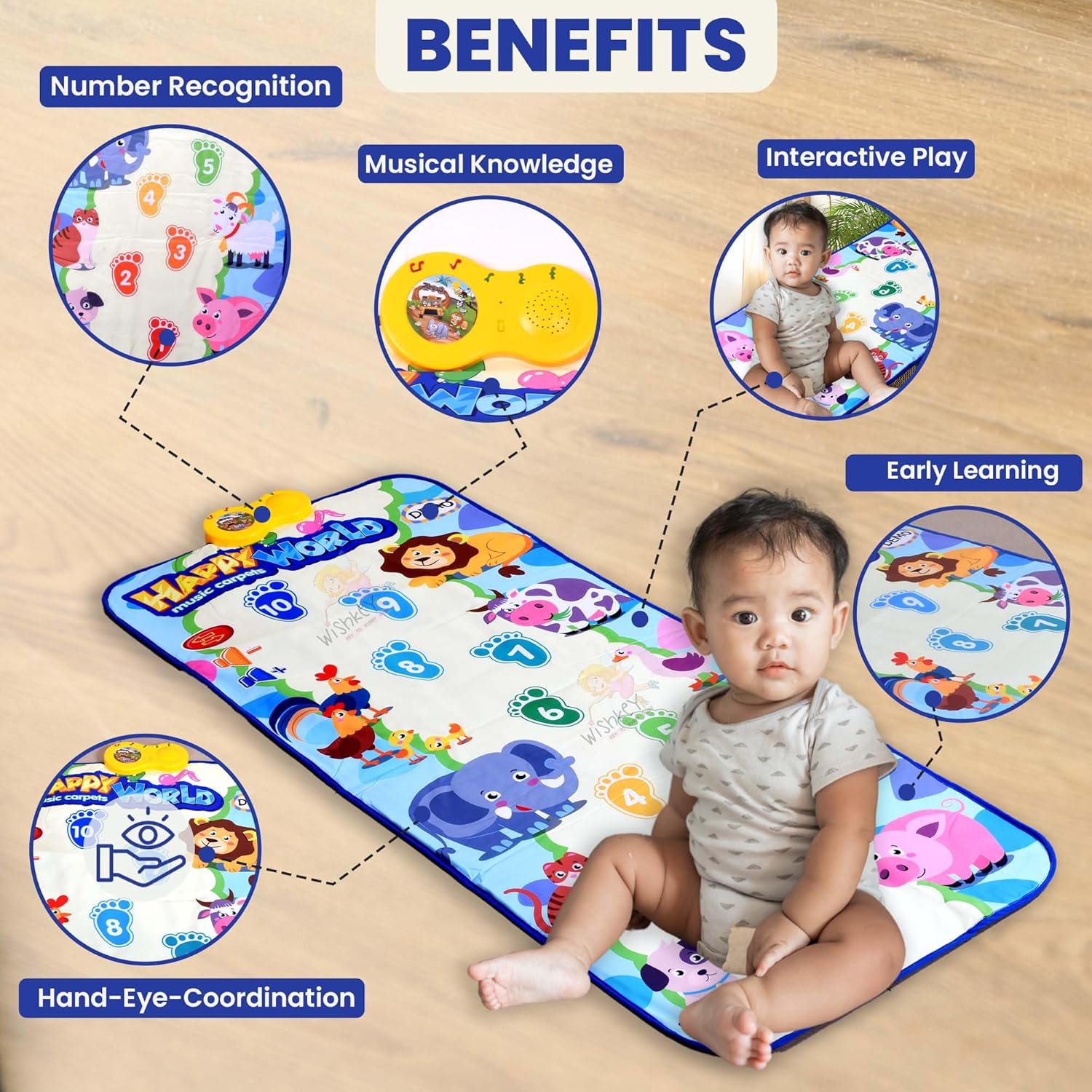 Covorașul muzical interactiv „Happy World” este o jucărie educativă ideală pentru cei mici, care combină distracția cu învățarea.