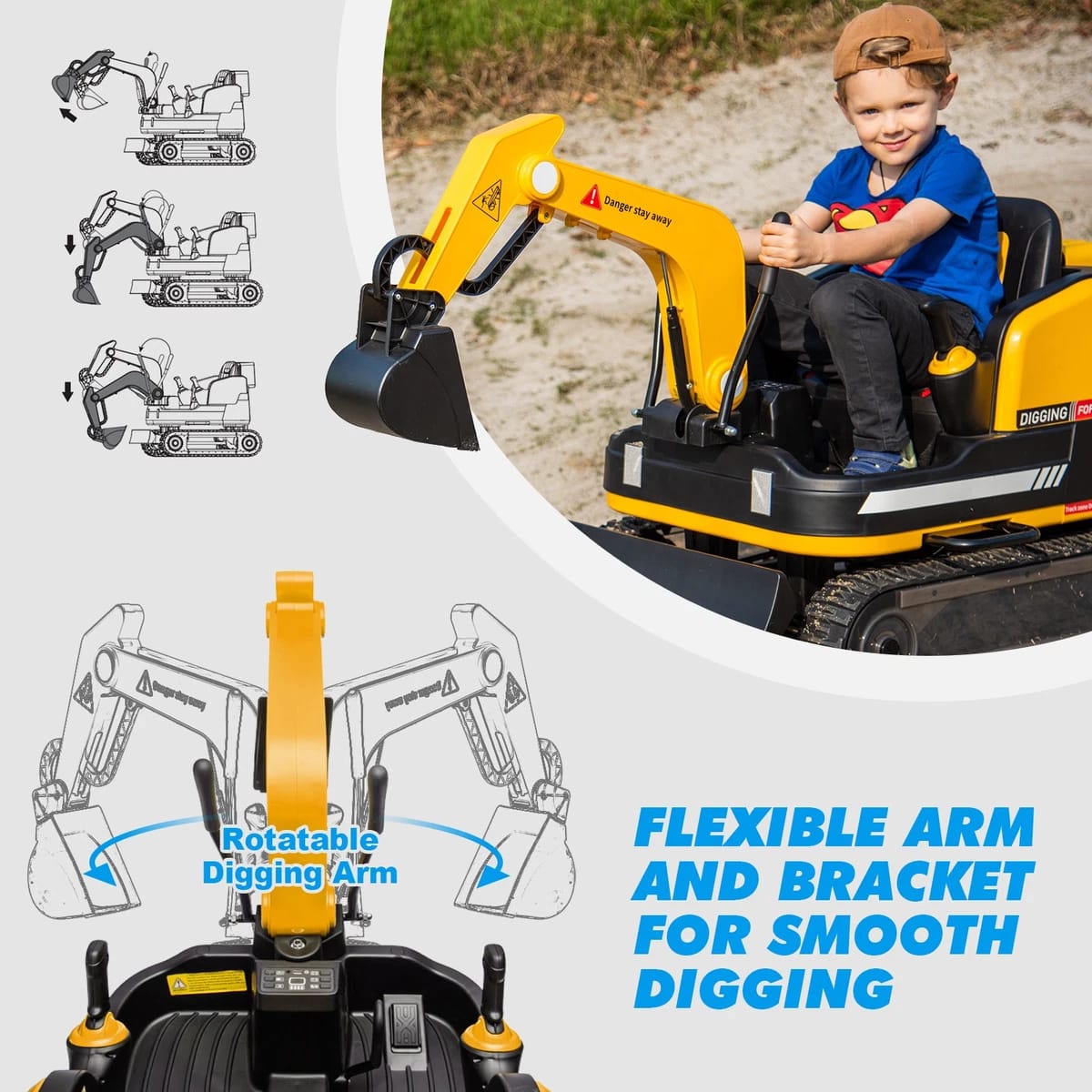 Excavator Electric pentru Copii cu Functie de Sapat 360° Galben