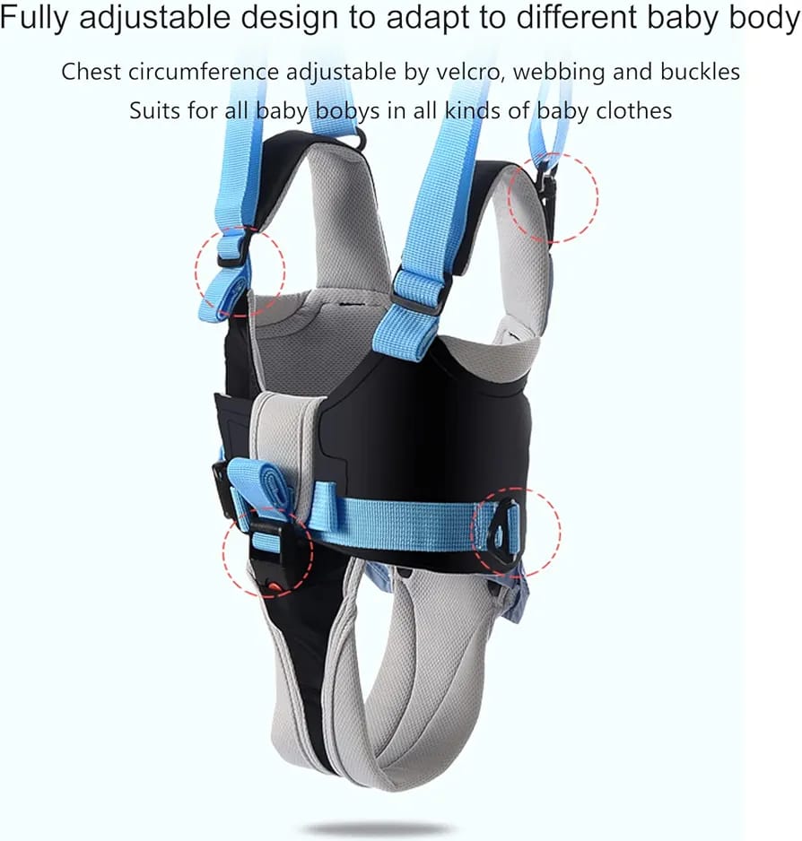 Sistemul susține copilul în poziție verticală și permite părinților să îl ghideze cu ușurință, reducând riscul de cădere.