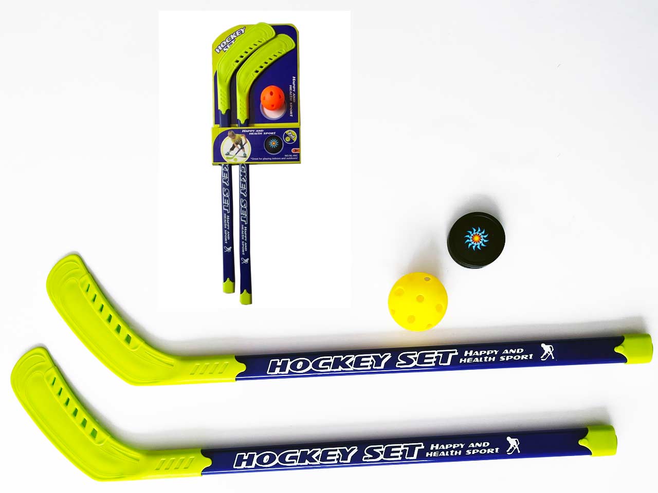 Set Crose de hockey cu minge. Acest set de crose de hockey cu minge este ideal pentru ore interminabile de distractie si activitate sportiva. Fie ca esti un incepator dornic sa-si exerseze abilitatile sau un jucator experimentat in cautarea unei noi provocari, acest set iti ofera tot ce ai nevoie pentru a te bucura de un joc pasionant de hockey. Setul include 2 crose, o minge si un puc, fiind complet echipat pentru a incepe jocul imediat. Dimensiunile sunt perfecte pentru a fi manevrate usor si confortabil: lungimea crosei este de 75 cm, diametrul mingii este de 7 cm, iar diametrul pucului este de 6 cm. Alege calitatea si performanta oferite de setul de crose de hockey cu minge pentru a transforma orice moment intr-o competitie amuzanta si plina de energie pozitiva!