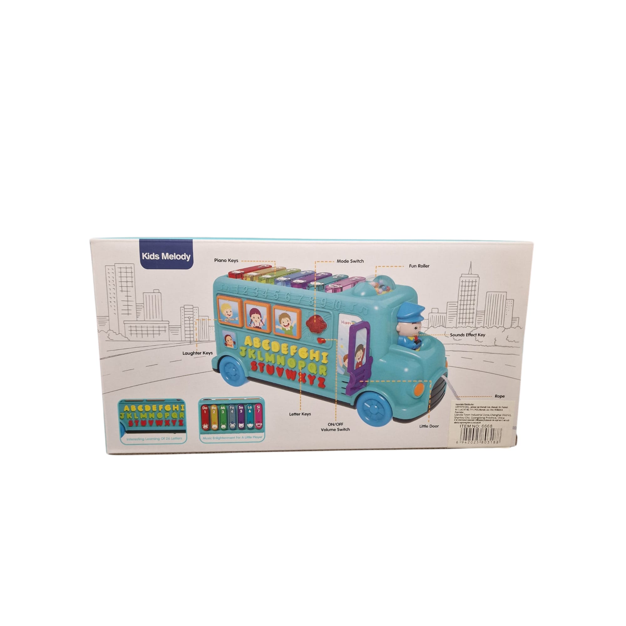 Sunete și efecte amuzante – autobuzul redă cântece pentru copii, efecte sonore și voci care îndrumă copilul în activitățile educative.