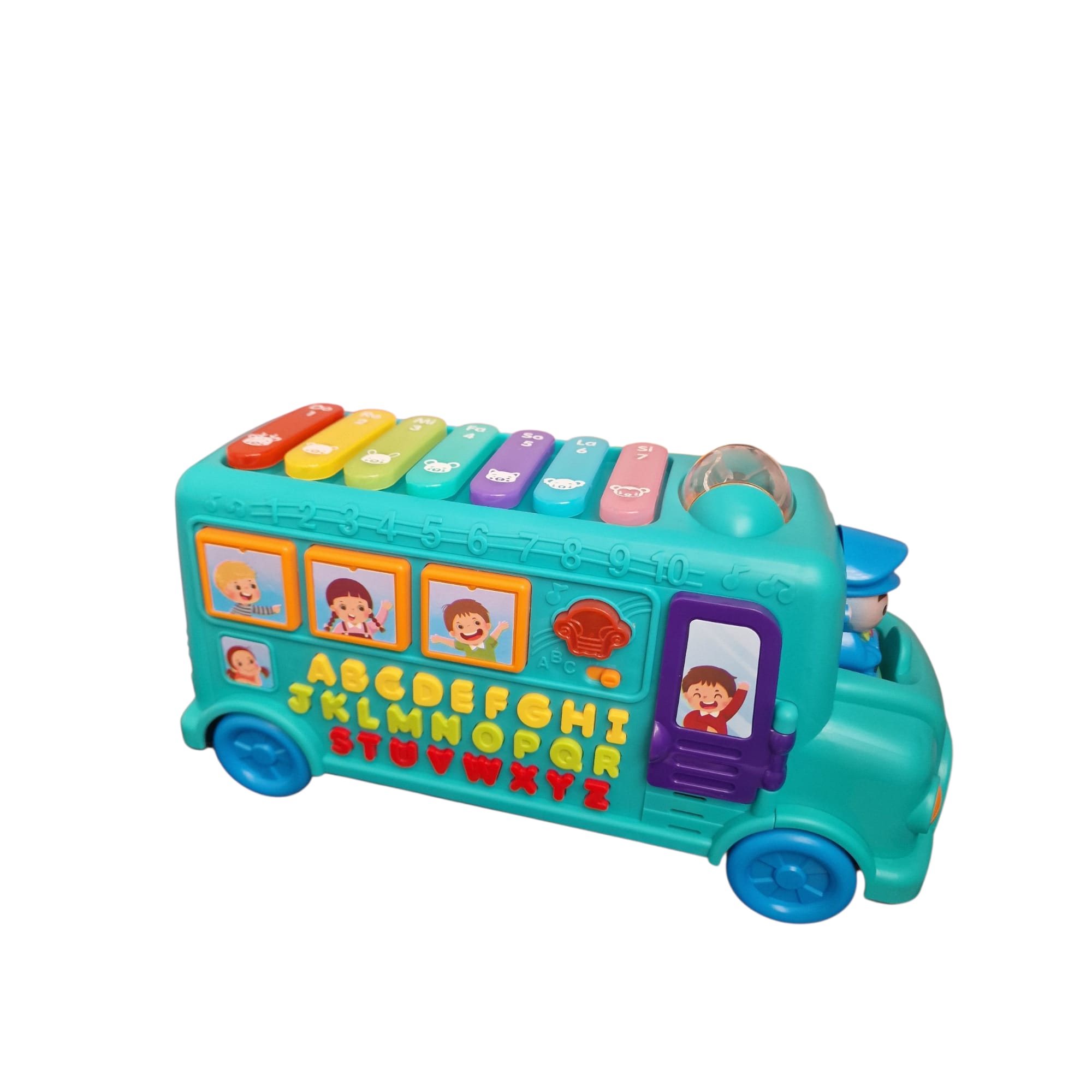 Autobuzul educativ multifuncțional este o jucărie inteligentă care combină muzica, lumina și învățarea prin joacă.