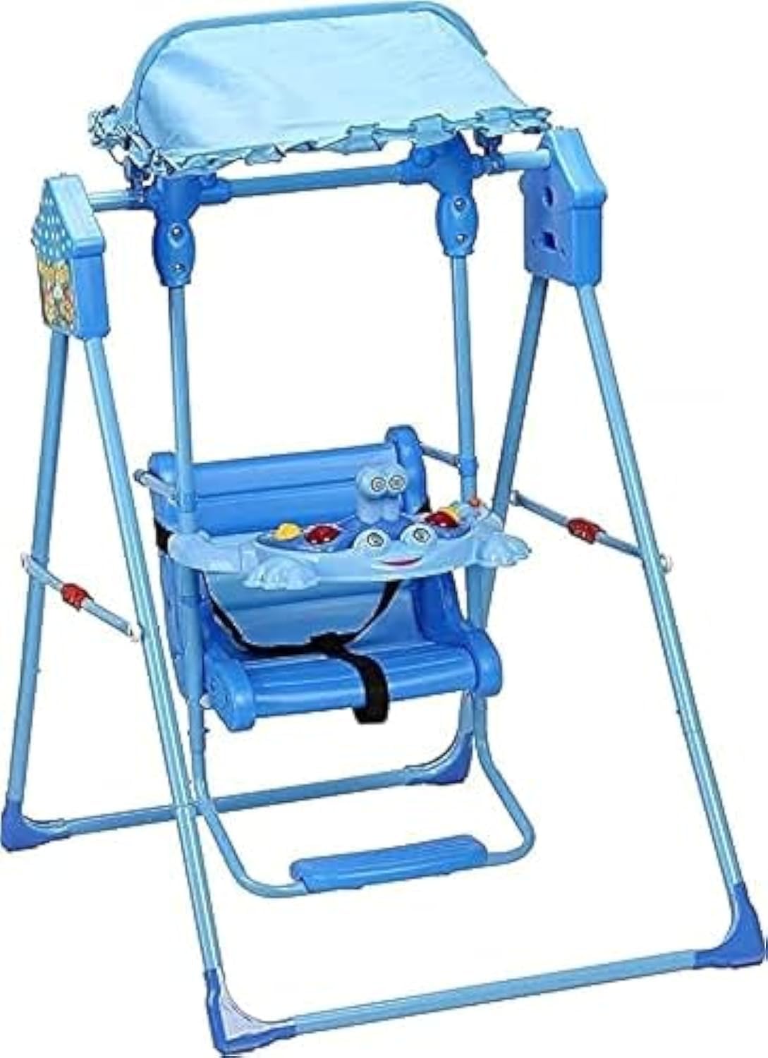 Vine echipat cu o centură de siguranță reglabilă care menține copilul bine fixat în timpul balansării.