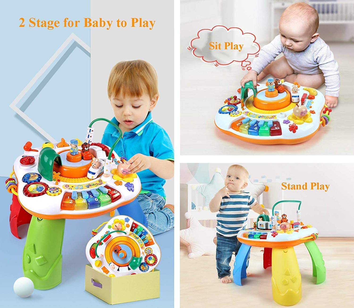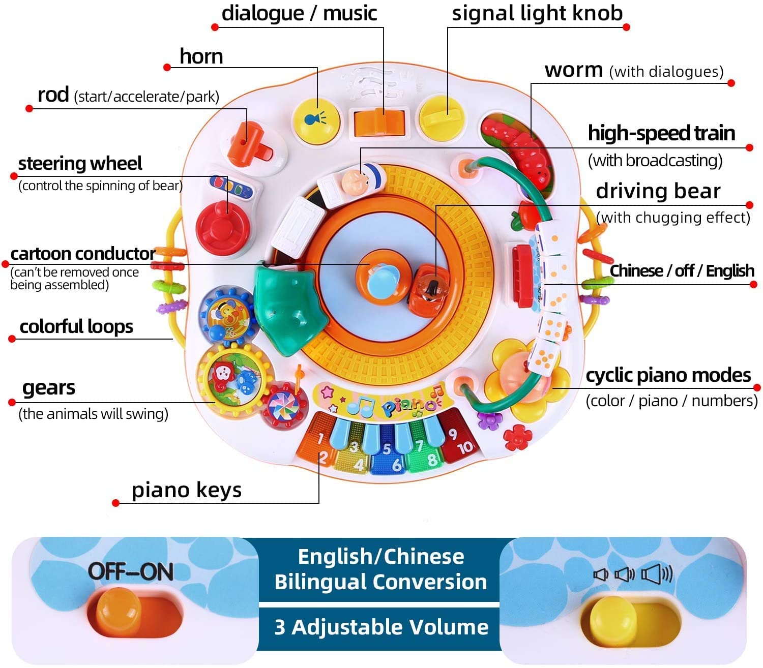 - Dezvoltarea abilităților motorii fine: Copiii pot apăsa butoane, roti piese și mișca obiecte pe masă.