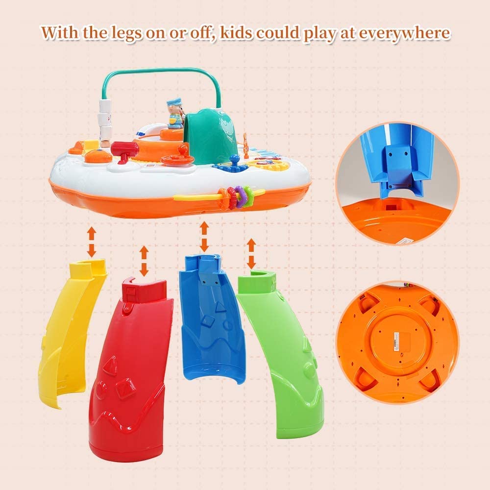 Această masuță interactivă cu activități educaționale este o jucărie ideală pentru copiii mici, oferind o gamă variată de funcții pentru învățare și dezvoltare.