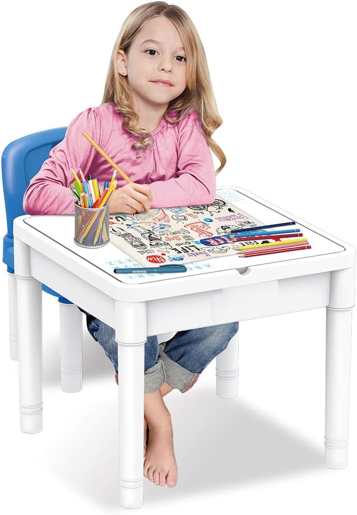 Această masă colorată este locul perfect unde copiii pot desena, construi, învăța și se pot juca, toate în același spațiu practic și sigur.