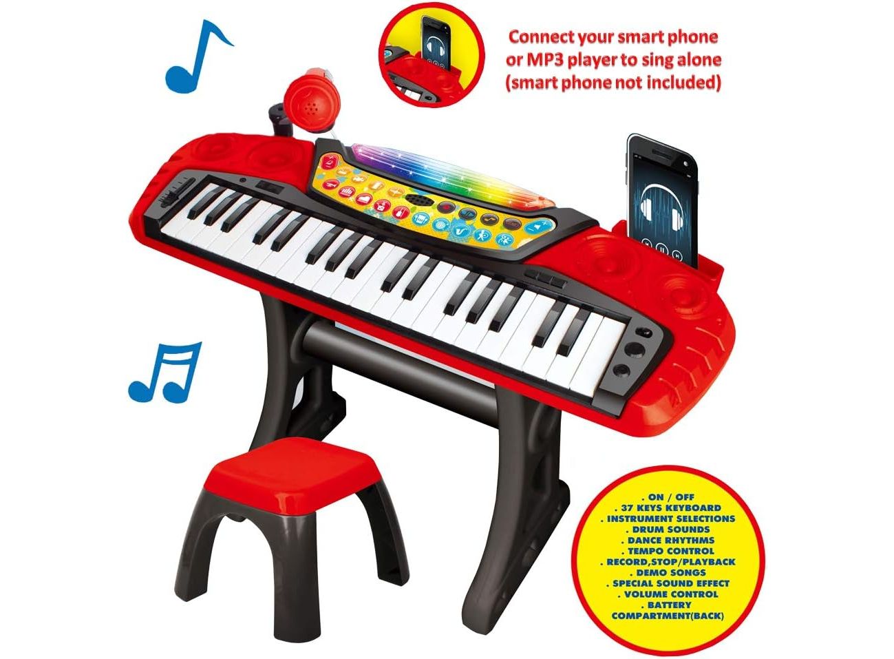 Set de orgă electronică și un scaun pentru a oferi o experiență completă de joacă și învățare muzicală.