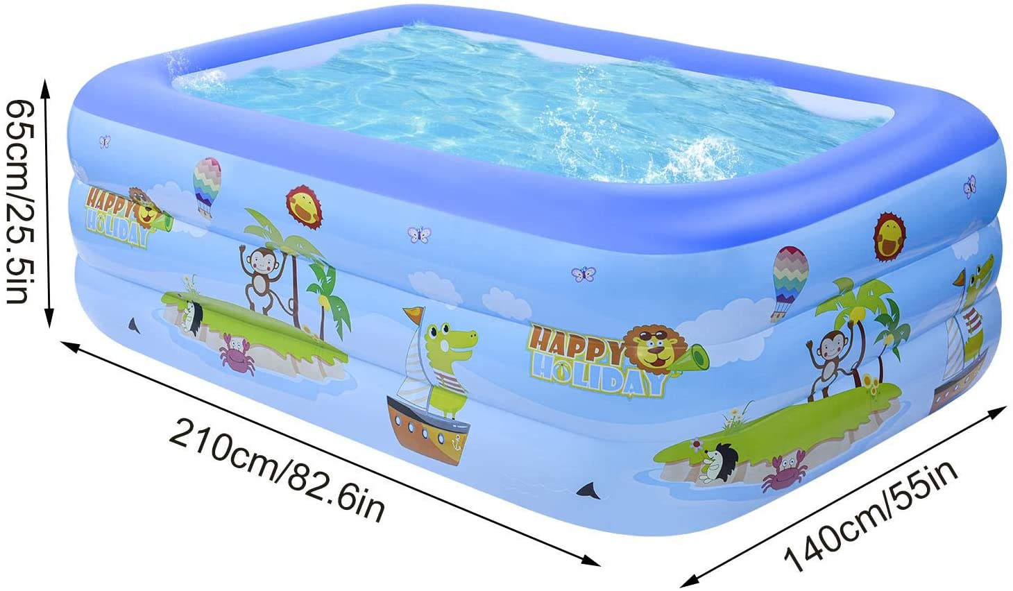 Cu o lungime de 210 cm, lățime de 140 cm și o înălțime de 65 cm, piscina oferă suficient loc pentru 2-3 adulți sau mai mulți copii, astfel încât toată familia să se poată bucura de răcorire și joacă.