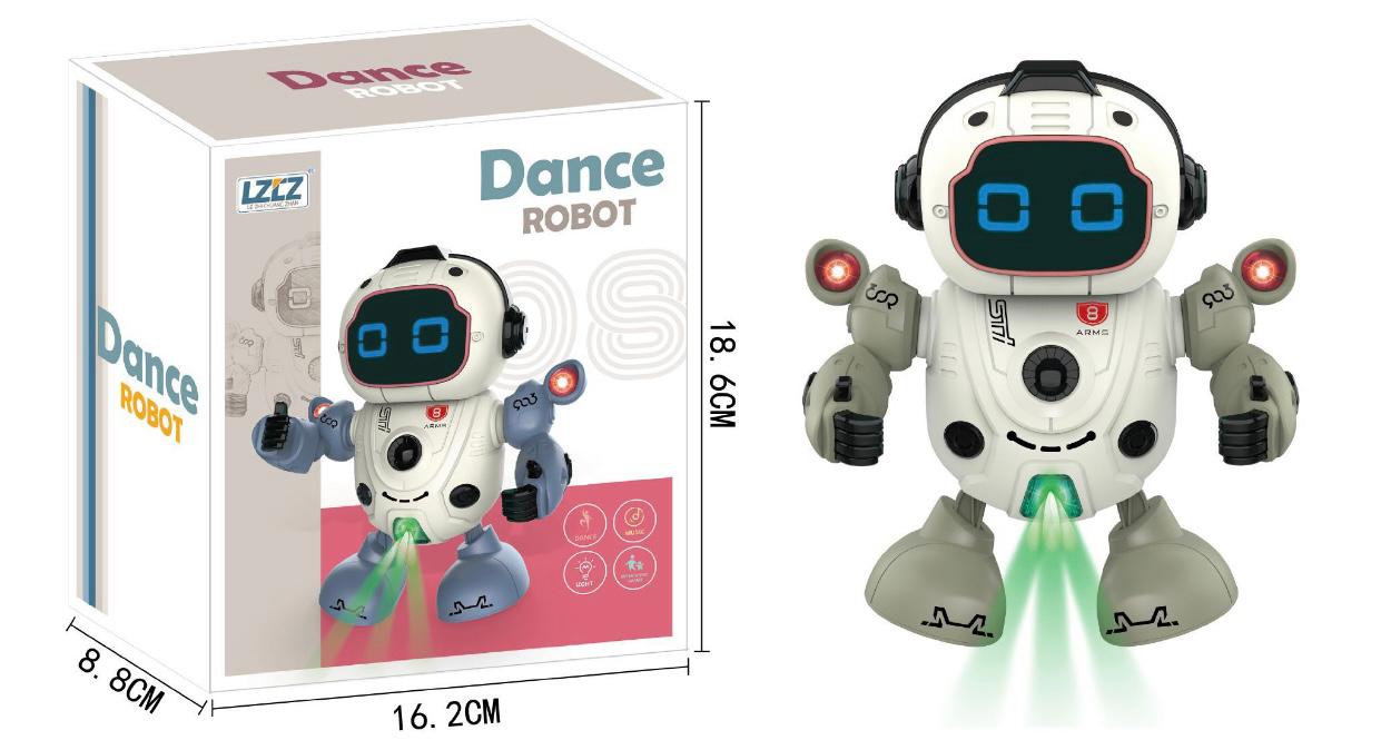 - Brațe și picioare mobile – Roboțelul își mișcă membrele în timp ce dansează.