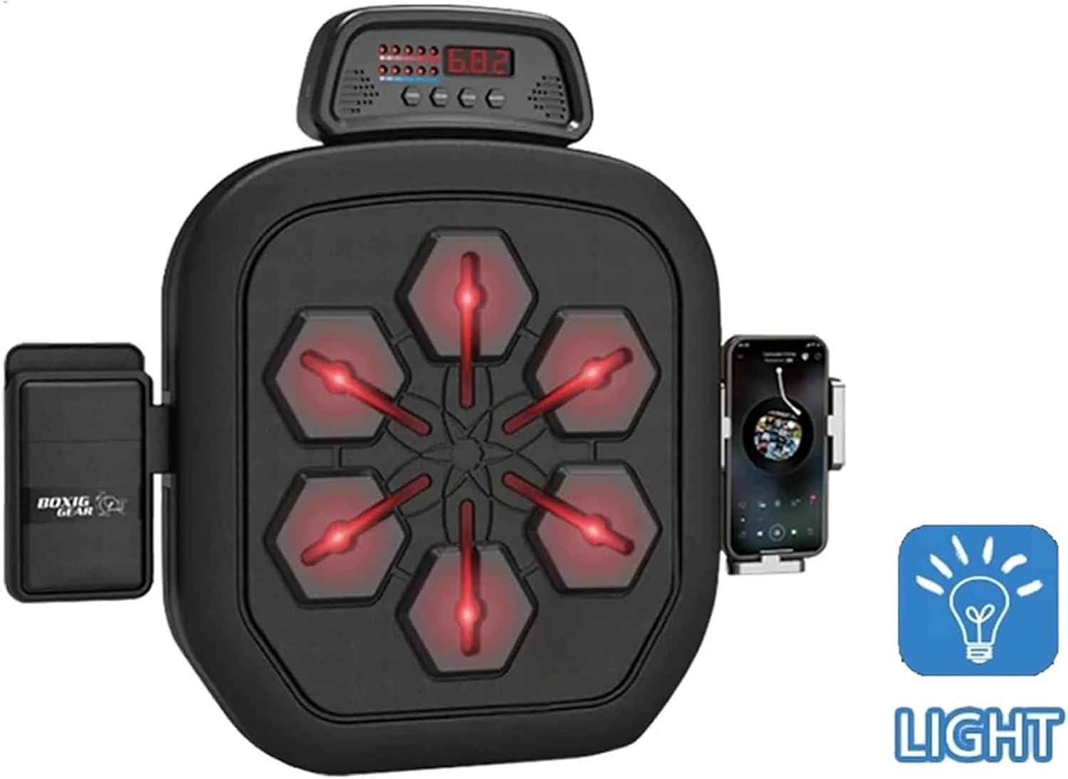 Panoul de lovire este echipat cu zone iluminate LED care indică punctele de impact, ajutând la îmbunătățirea timpului de reacție, coordonării mână–ochi și concentrării.