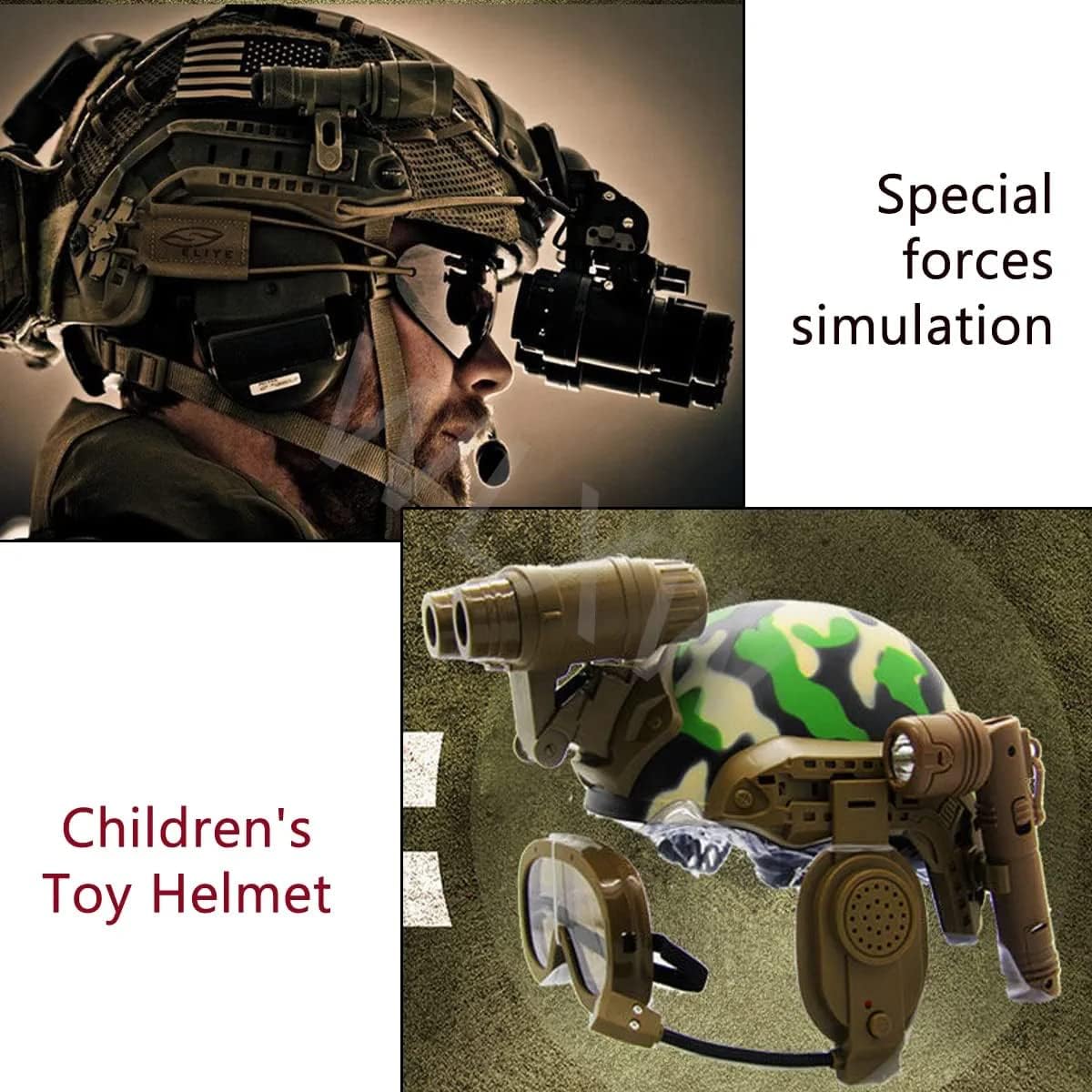 Această cască tactică de jucărie cu design camuflaj este perfectă pentru copiii pasionați de jocuri de rol, aventuri în aer liber sau misiuni de explorare.