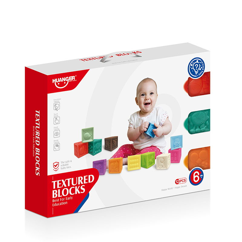 Descoperă o jucărie educativă esențială pentru cei mici — Setul de Cuburi Moi Texturate Huanger, conceput special pentru bebeluși începând cu vârsta de 6 luni.