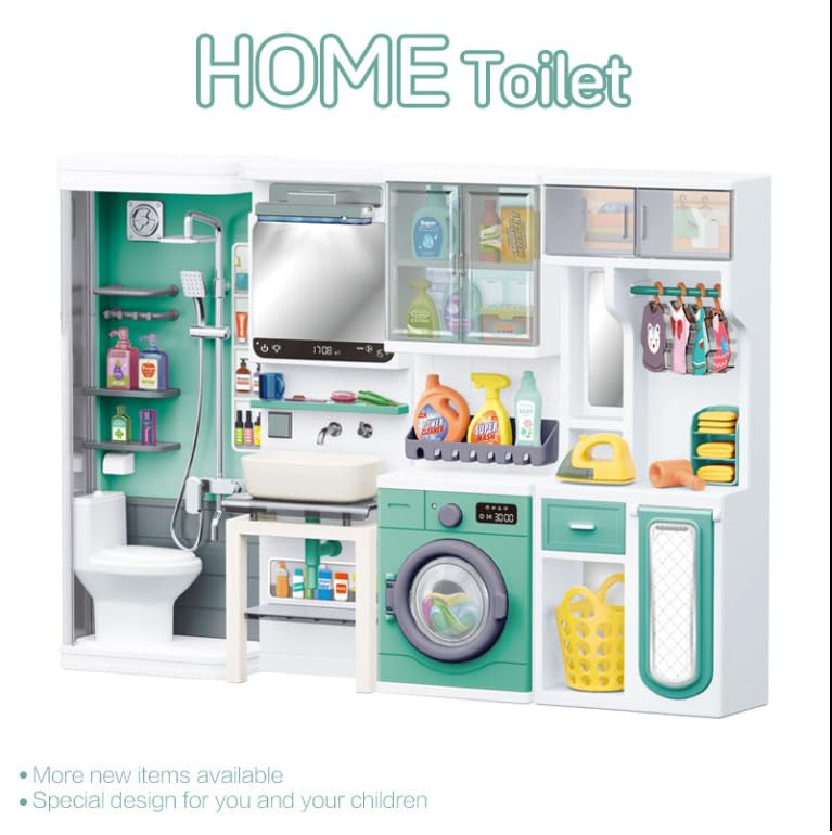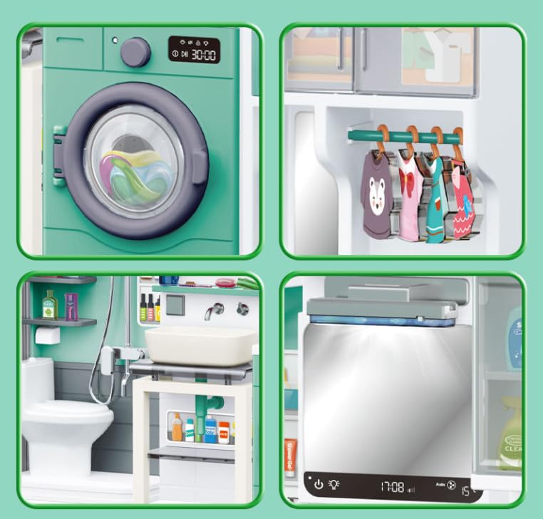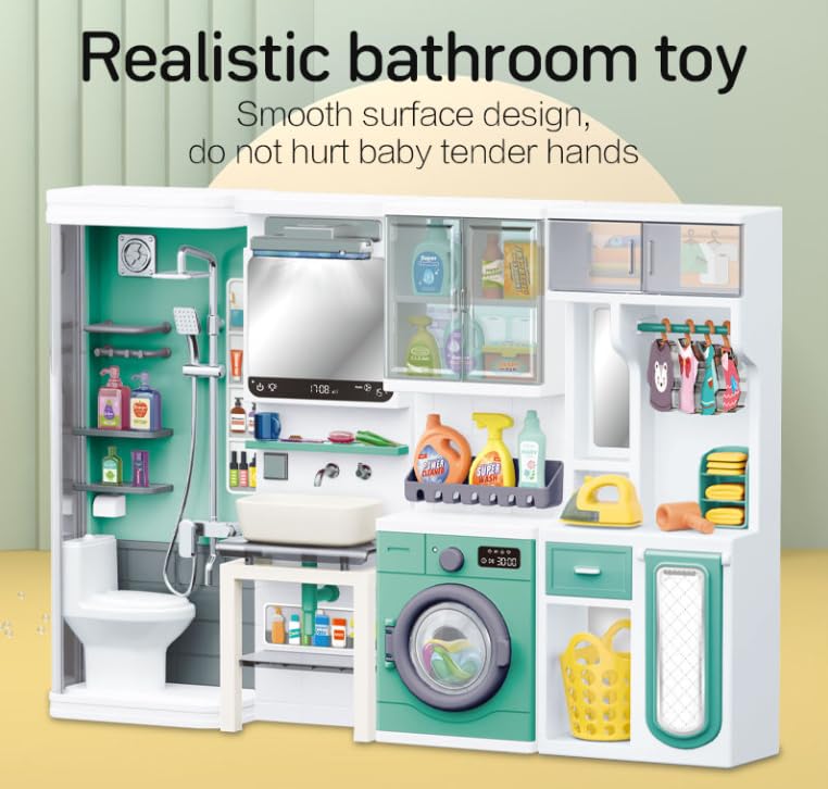 Transformă joaca în învățare cu acest set de baie și spălătorie realist, creat special pentru micii exploratori ai casei!