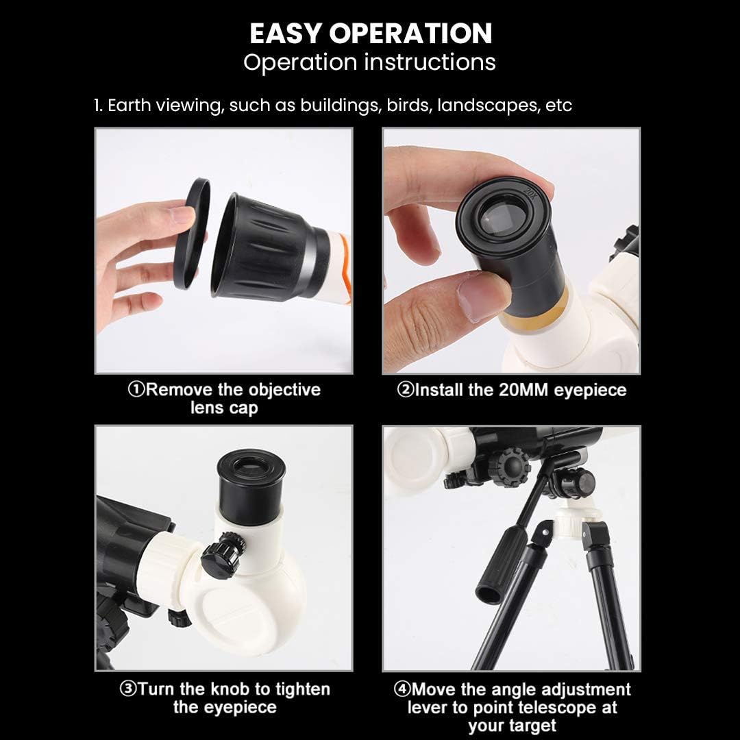 Acest telescop astronomic este un instrument ideal pentru pasionații de observații astronomice și pentru cei care doresc să exploreze frumusețea cerului nopții. Conceput special pentru începători și entuziaști, oferă o magnificare puternică, claritate excepțională și portabilitate, fiind ușor de transportat și utilizat.
