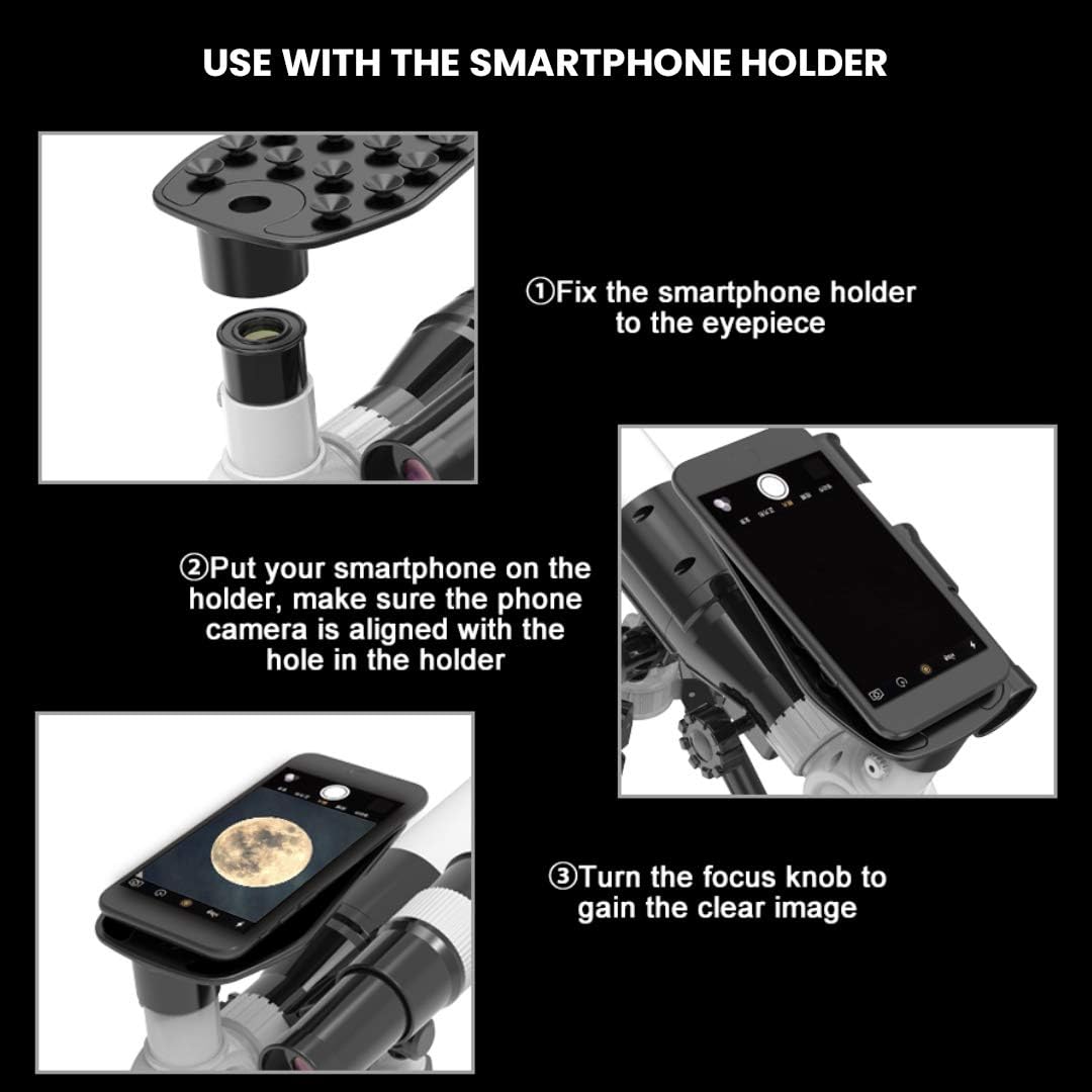 ✔ Permite atașarea telefonului mobil pentru capturarea imaginilor și videoclipurilor cu Luna și planetele.